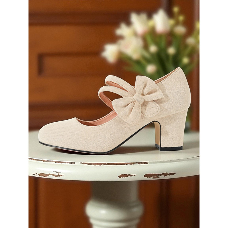 Women's Vintage Pink Bow T-Strap Heels - Classic Mid Heel Dress Shoes with Buckle Strap for Weddings, Parties, and Formal Events