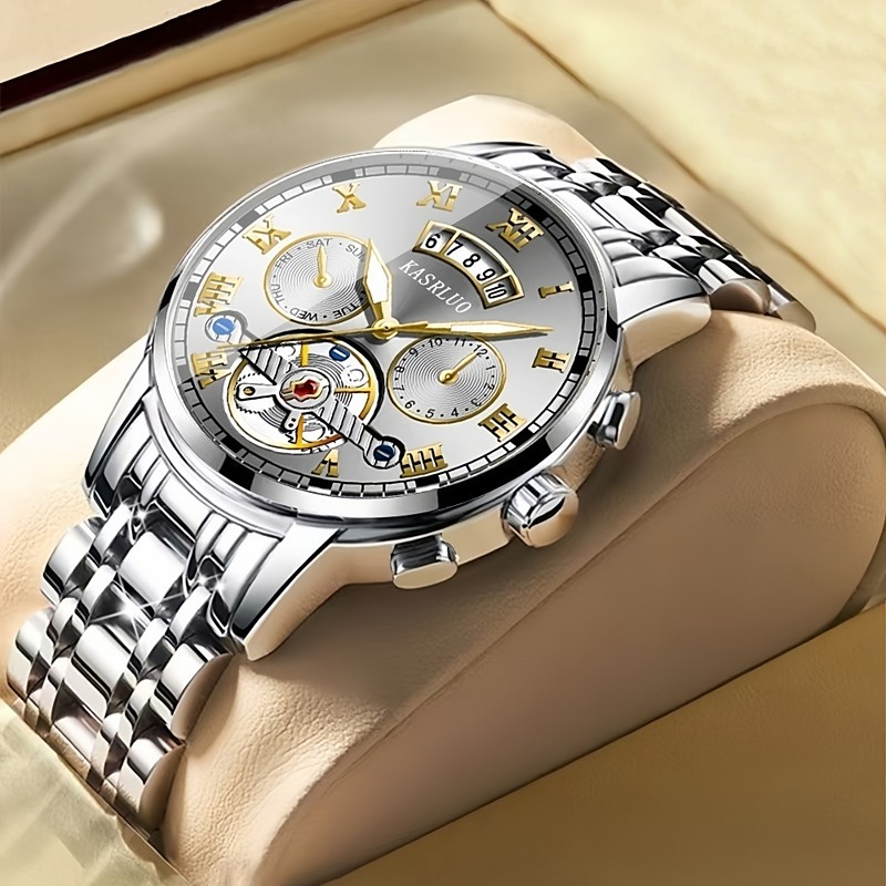 1 Original Business-Style Men'S Steel Band Watch With Ipx7 Water Resistance Luminous Calendar And Day Display Multi-Functional Fashionable And Trendy Quartz Watch Suitable For Travel Leisure And S