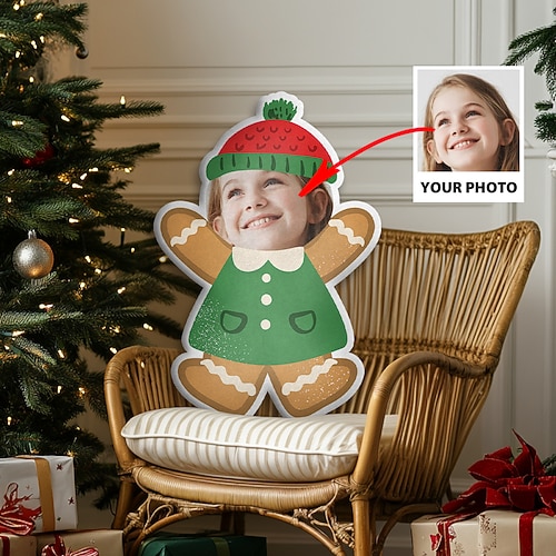 cuscino personalizzato con foto natalizia, cuscino umanoide fai da te creativo, regalo di compleanno divertente per gli amici, cuscino con foto unica, regali fotografici personalizzati per Natale.