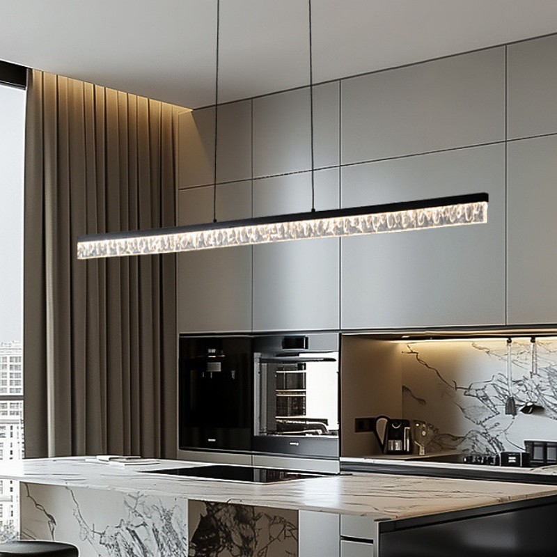 Modern Linear Pendant Light Crystal Style Stepless Dimming with Remote Control Metal Island Lighting Lamp for Dining Room 100cm 110-240V