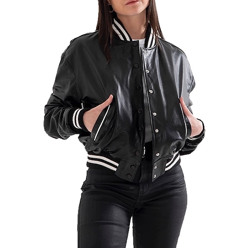 Per donna Giacca in Ecopelle Confortevole Cerniera Tasca Casual Semplice All'aperto Vacanza Abbigliamento quotidiano Uscire Regolare Collo alla coreana Vestibilità regolare Manica Lunga Capispalla