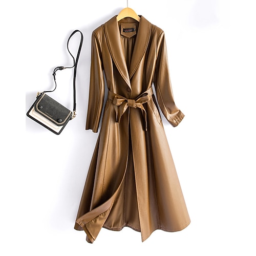 Per donna Giacca in Ecopelle Trench Trench in pelle Caldo Confortevole Nodo frontale Tasca Bottoni Moda Semplice Vacanza Streetwear Uscire Weekend Lungo Collo ripiegato Vestibilità regolare Manica