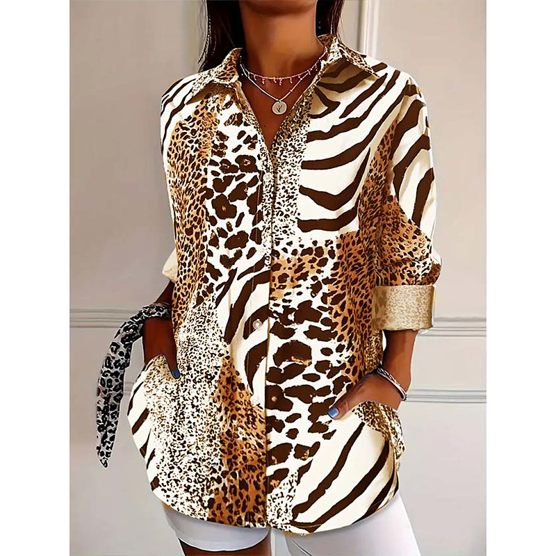 Women's Animal V Neck Mini Dress Long Sleeve Spring Fall