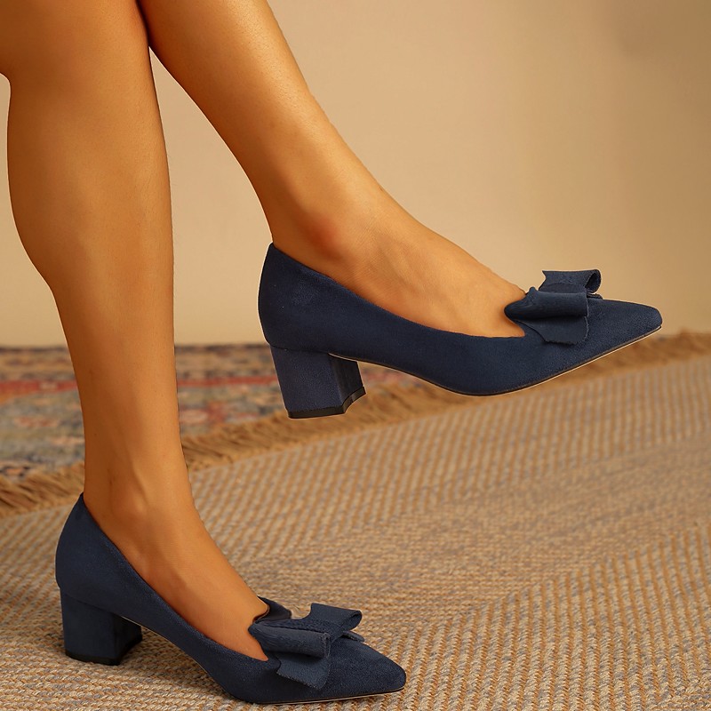 Women's Suede Bow Detail Block Heel Pumps – Elegant and Comfortable for Office, Parties, and Special Occasions