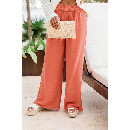 Per donna Normale Culotte Gamba Larga Gamba larga Pantaloni in cotone e lino Moda Lunghezza intera Misura del girovita medio Tinta unica Elastico in vita Gamba larga Baggy Comodità Micro-elastico
