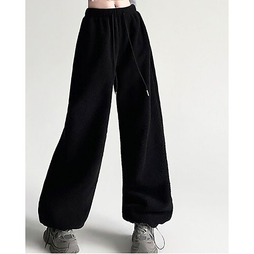 Per donna Culotte Gamba Larga Pantaloni in Pile Streetwear Casual Lunghezza intera Vita media Semplice Tasca Elastico in vita Coulisse alla gamba Confortevole Micro-elastico Vacanza Streetwear