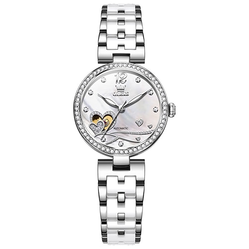Orologi meccanici automatici da donna olevs eleganti con cinturino in ceramica e quadrante con diamanti cavi, orologi da donna originali di lusso, regali 7086
