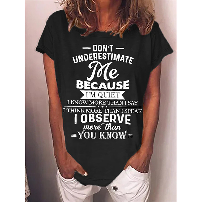 Women's T Shirt Letter Text Funny Slang Basic Short Sleeve Round Neck Regular Tops Daily Weekend Print Black Red Blue Green Spring, Fall, Winter, Summer