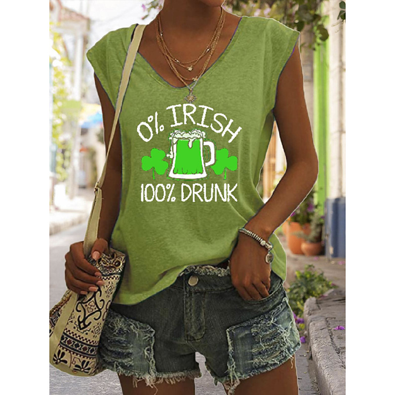 St. Paddy's Day St. Patrick's Day Women's Tank Top Leaf Text St. Patrick's Day Sleeveless V Neck Regular Tops Daily Weekend Print Black Green Gray
