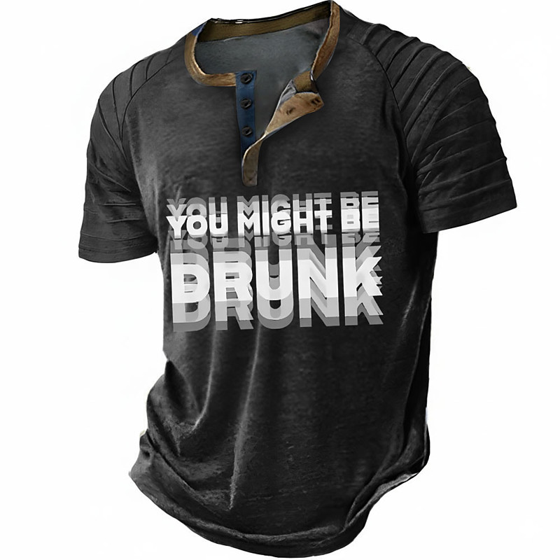 Men's Text Funny T Shirt Henley Shirt Short Sleeve Designer Retro Vintage Street Casual Daily Summer Spring Black Navy Blue Green Gray Henley Henley T-Shirt