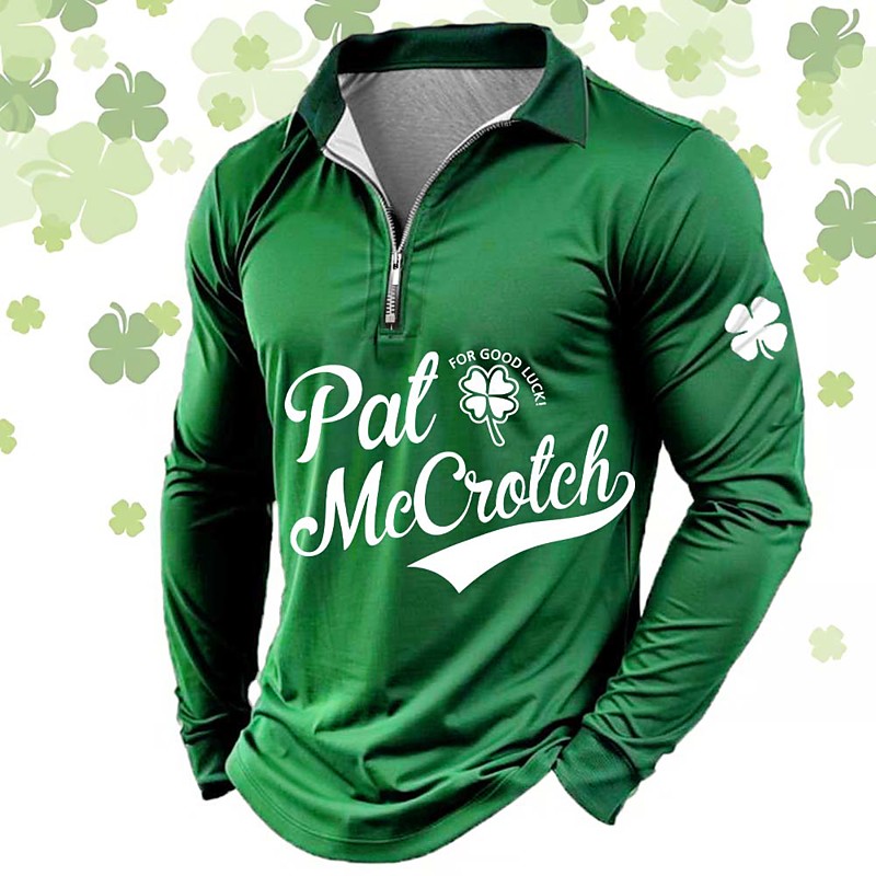 St. Patrick Men's Text Zip Polo Shirts Long Sleeve Polo Shirts Lapel Casual Outdoor Festival Outfit 3D Print Spring Fall Black Navy Blue Green