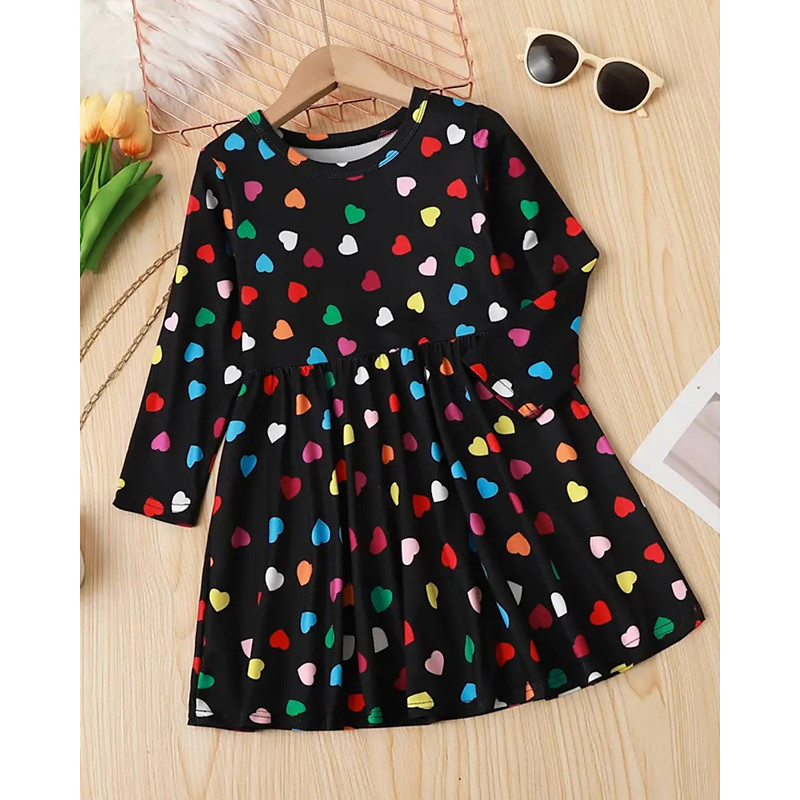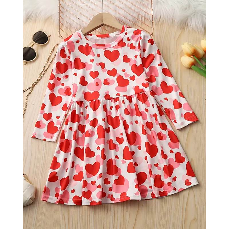 Girls' 3D Heart Graphic Dress Long Sleeve Summer Spring Vacation Daily Holiday Princess Beautiful Sweet Kids 4-12 Years Casual Dress A Line Dress Knee-length Regular Fit