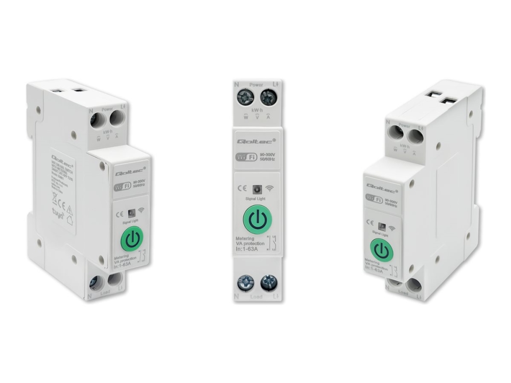 Qoltec Wi-fi 63A DIN-skinne relæ med elmåler | TUYA SMART LIFE