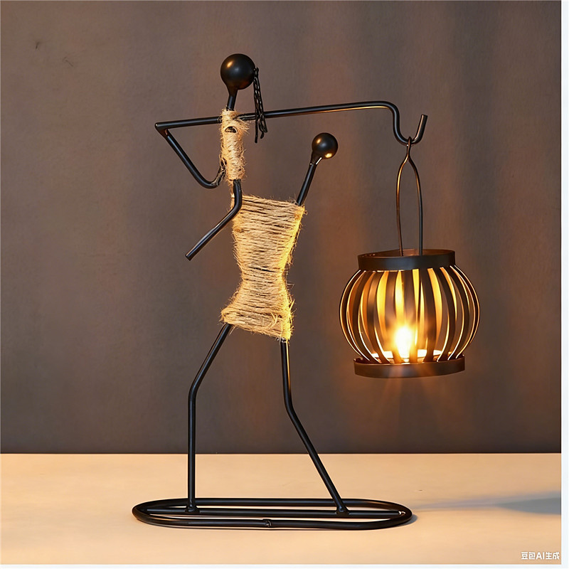 Nordic Metal Candlestick Abstract Character Sculpture Candle Holder Decors Handmade Figurines Home Decoration Art Gifts Button Battery Powered 1PC