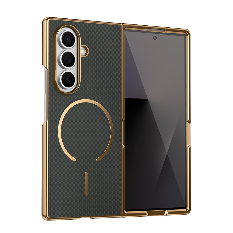 Phone Case For Samsung Galaxy Z Fold 7 Z Fold 6 Z Fold 5 Z Fold 4 Z Fold 3 Back Cover with Screen Protector Magnetic Support Wireless Charging Retro Plating PC PU Leather