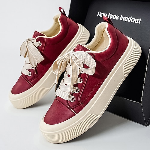 Lässige Herren-Sneaker zum Schnüren – burgunderrotes Kunstleder, klassischer Streetstyle, ganztägiger Tragekomfort für jeden Tag