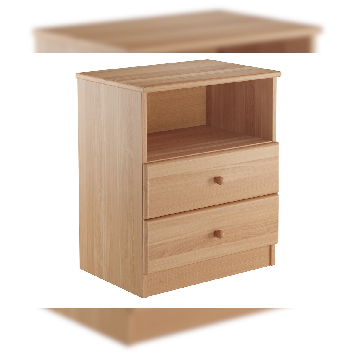 Erst-Holz 90.20-K35 hohe Nachtkonsole Buche Nachttisch mit zwei Schubladen und offenem Fach