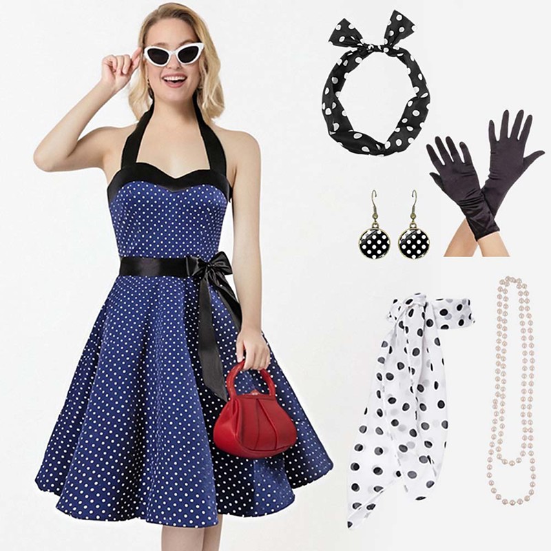 Outfit Vintage retro anni '50 Grease Costume Rockabilly Petticoat Gonna a cerchio Vestito A-Line Tutu Vestito a pois Festa Elegante Costume da donna Festa di Re Abito Mascherata Festa Serale Adulti