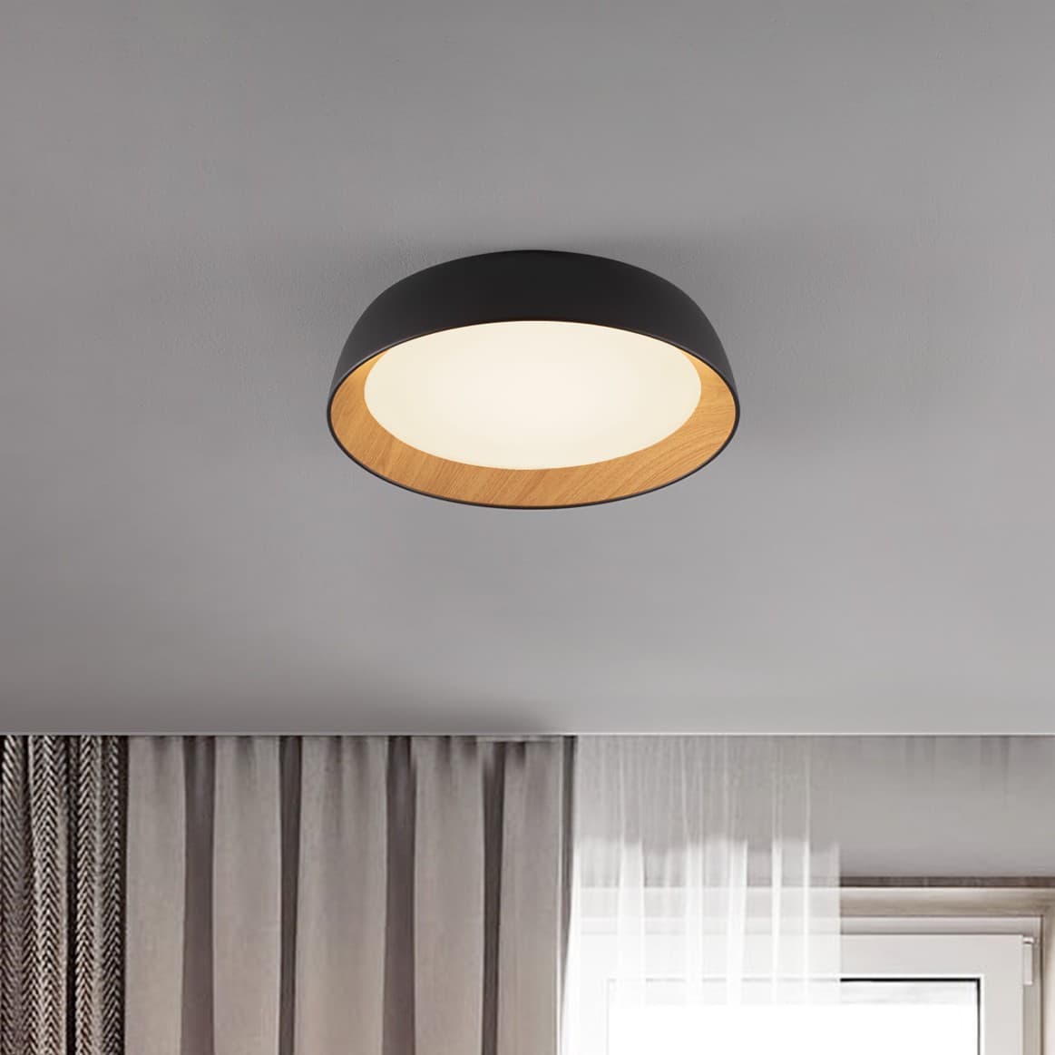 Nova Luce Sigi - plafondlamp - Ø 45 x 10 cm - 40W dimbare LED incl. - zandzwart en hout