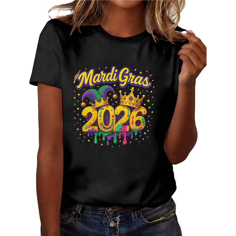 T-shirt Sleeve T-shirt Mardi Gras 2026 for Unisex Adults' Hot Stamping for Carnival Mardi Gras Club Festival