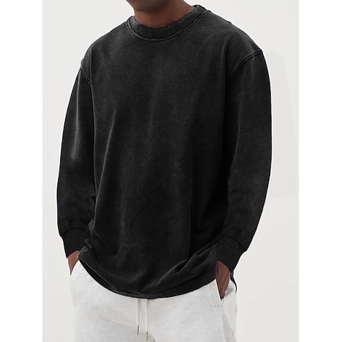 Herren T-Shirt Langarmshirt Langarm Rundhalsausschnitt Herbst Winter Retro Einfarbig Mode Designer Nostalgisch Mode Jahrgang Urlaub Straße Ausgehen Schwarz Himmelblau Olive Top T-Shirt für Herren