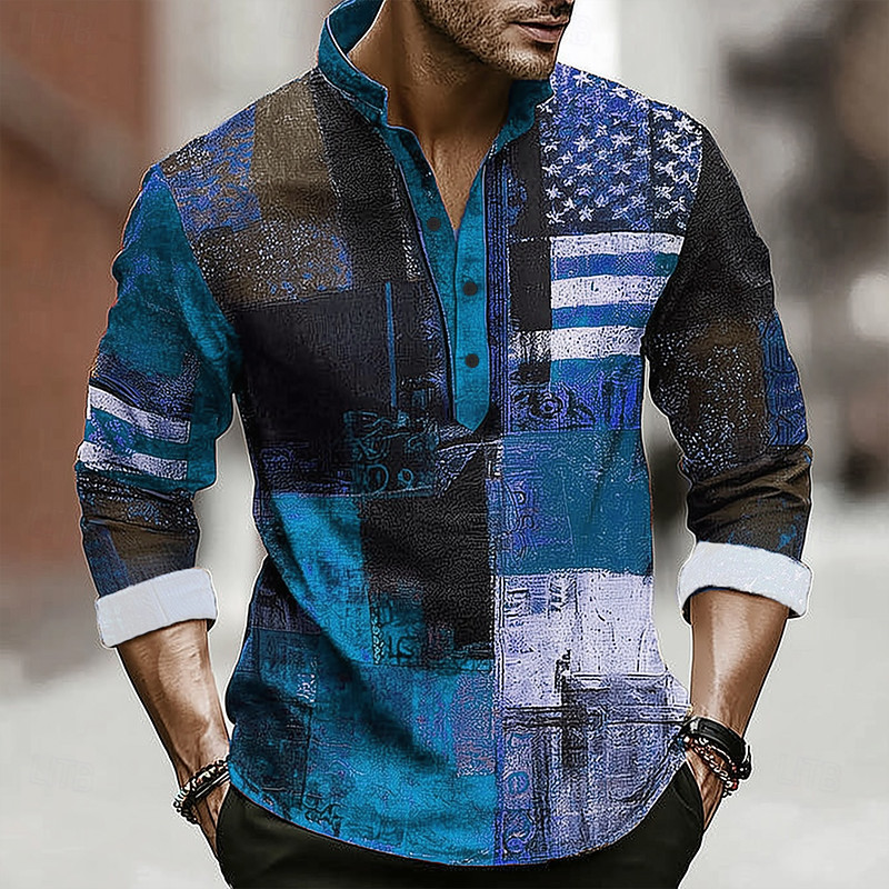Men's US Flag Freedom America's 250th Anniversary Shirt Button Up Shirt Long Sleeve Vintage Retro Holiday Casual Daily Spring Fall Turndown 3D Print Linen Like Shirt White Red Dark Blue