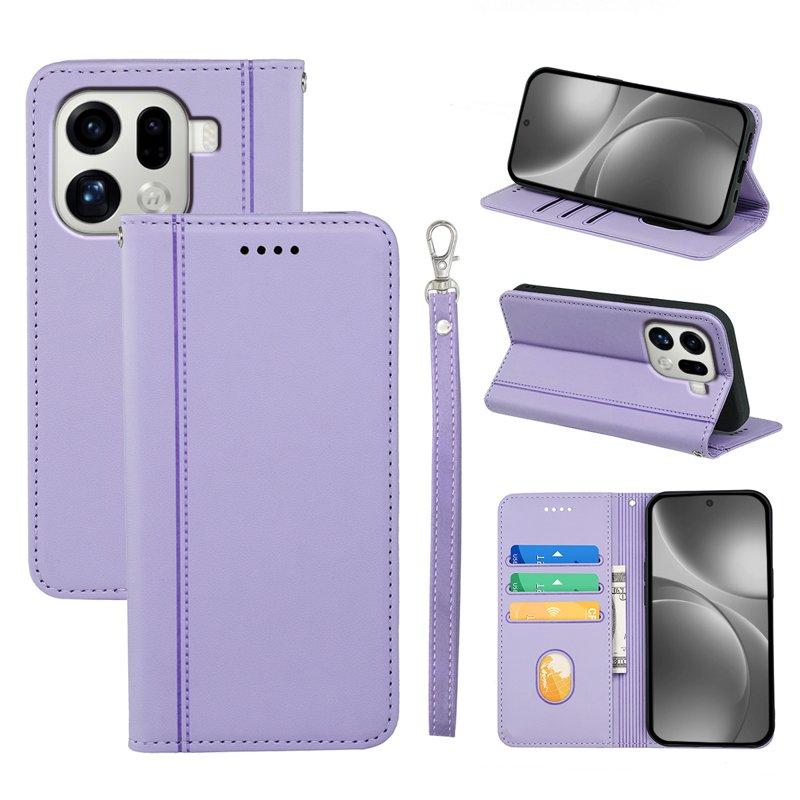 Oppo Find X9 Pro 5G Plånboksfodral Konstläder Magnetisk Stängning - Lila