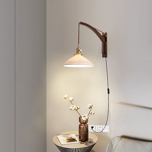 lampada da parete con montaggio a parete sul comodino paralume in ceramica lampada da parete a led con gancio in legno in stile scandinavo lampada da parete con spina