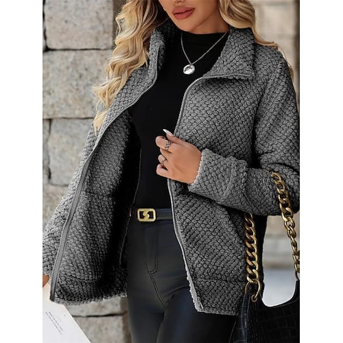 Damen Parka Bequem Atmungsaktiv Reißverschluss Tasche Lässig Einfach Urlaub Straße Lässig Alltagskleidung Reisverschluss Regulär Umlegekragen Normale Passform Langarm Oberbekleidung Weiß Rote Khaki
