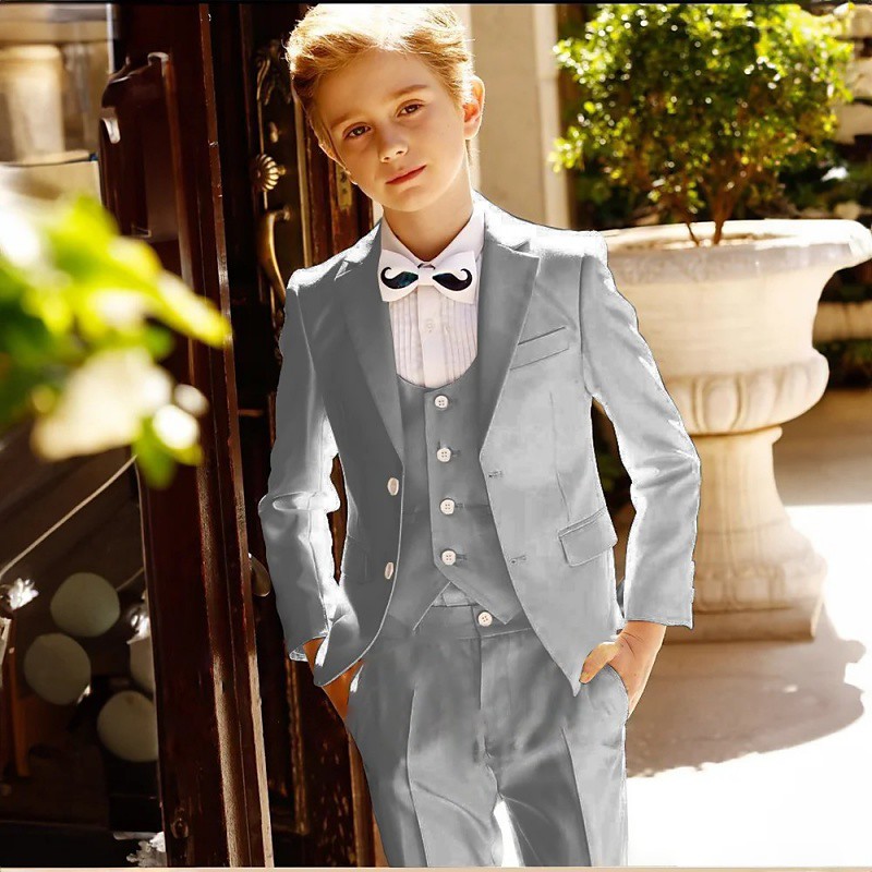 5 Pieces Ring Bearer Suit Boys Kids Suit Formal Suit Blazer Vest Pants Brooch Tie Formal Party Fashion Cool Solid Color Pocket Blue Beige Gray Polyester