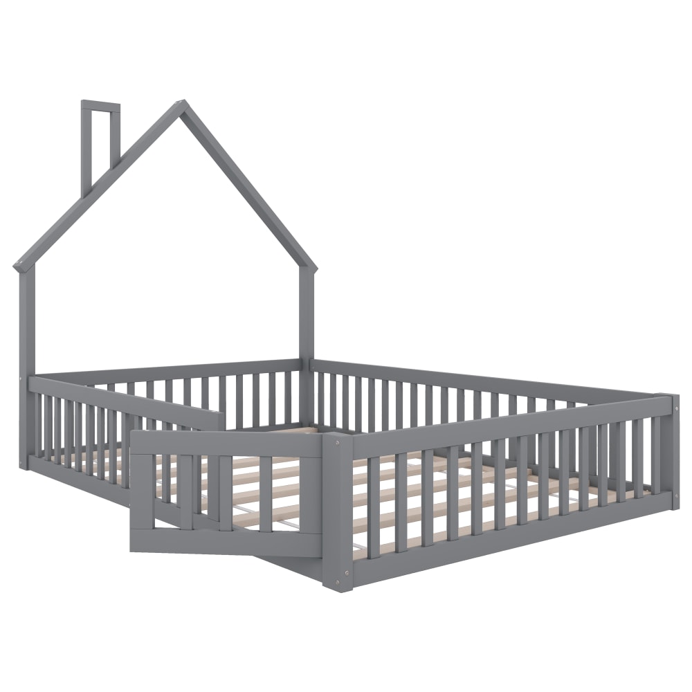 Letto per bambini in pino grigio 140x200 cm con rete a doghe