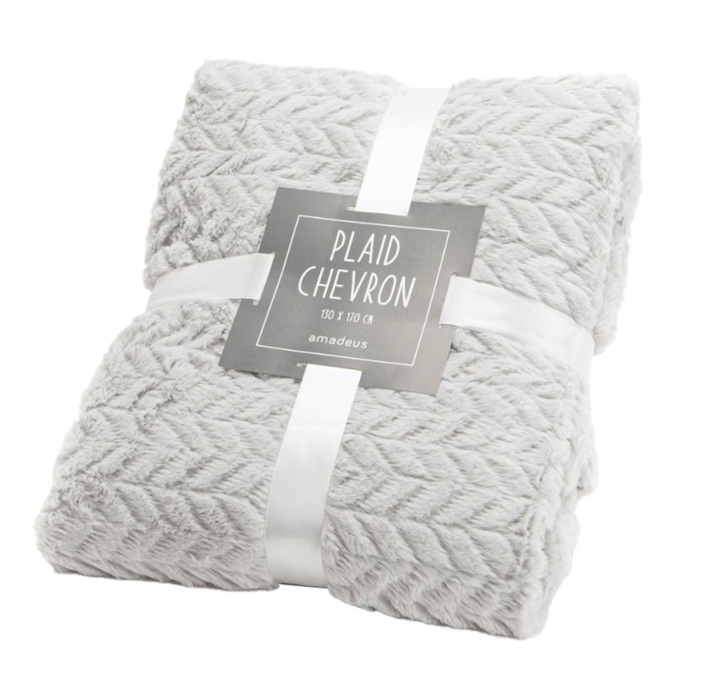 Plaid Chevron 130x170 hellgrau - Rechteck Polyester Amadeus 130x1 cm