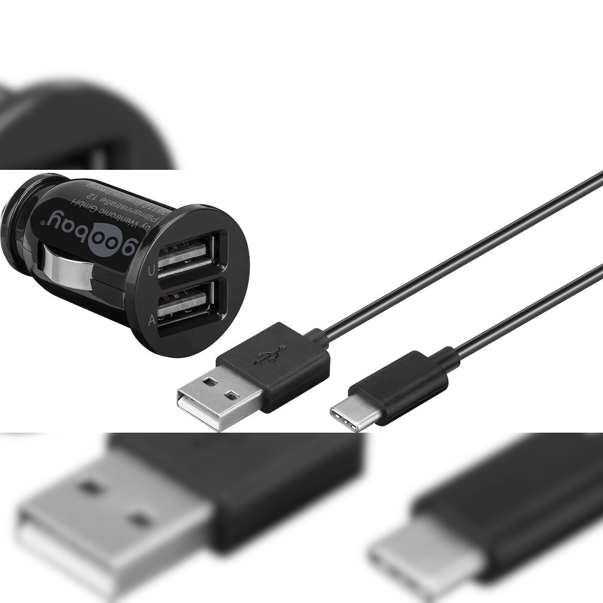 Goobay 58820 USB Type-C™ Auto-Ladeset 2,1 A, Schwarz, 1 m - Kfz-Ladeadapter mit 2 USB Ports und USB Type-C™ Kabel