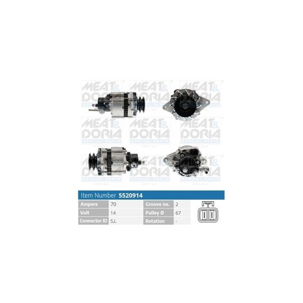Laturi 14V 70A Meat & doria 5520914 - nissan terrano ii, urvan buss, urvan skåp - OE 2310002N14, 2310002N15, 2310002N18