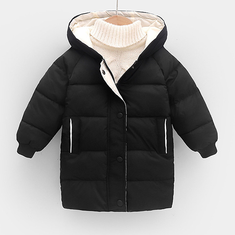 Kids Unisex Down Coat Puffer Jacket Outerwear Solid Color Long Sleeve Pocket Coat Outdoor Daily Black Pink Green Fall Winter 4 years