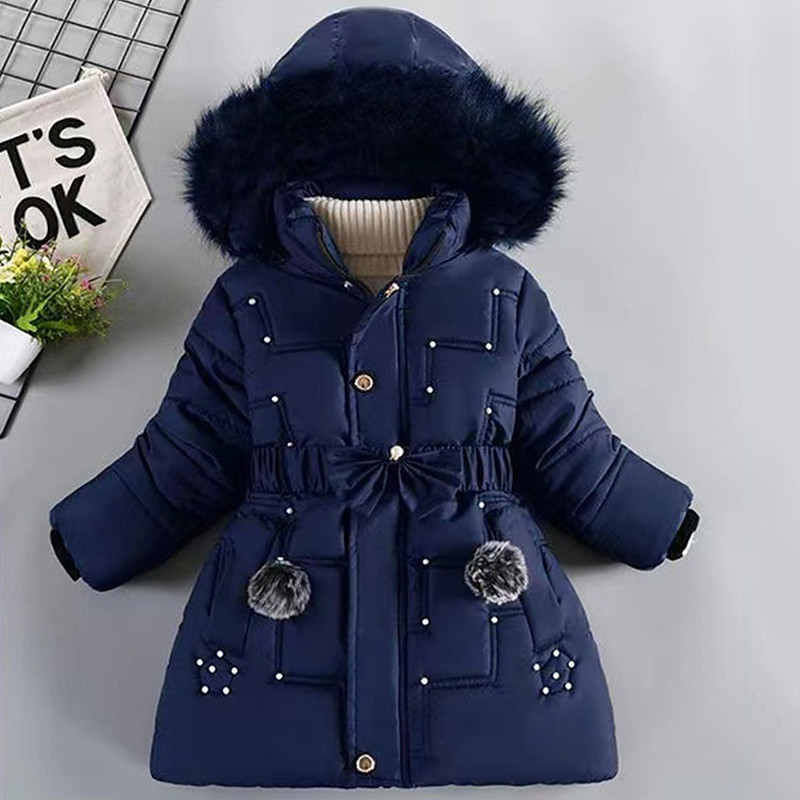 Kids Girls' Down Coat Solid Color Fashion Fur Trim School Coat Outerwear 4-12 Years Fall Black Wine Navy Blue