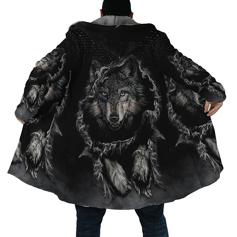 Men's Animal Patterned Winter Coat Fleece Jacket Coat Thermal Warm Comfortable Casual Daily Wear Zipper Pocket 3D Print Fall Winter Hooded Long Sleeve Black 1 Black Gray