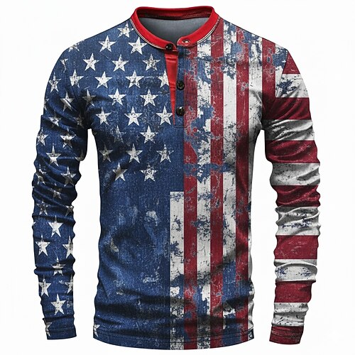 Herren Retro USA Flagge Henley Hemd Langarm Vintage-Stil Lässig Lässig Ferien Frühling Herbst Ganzjahres 1# 2# 3# Henley Henley T-Shirt