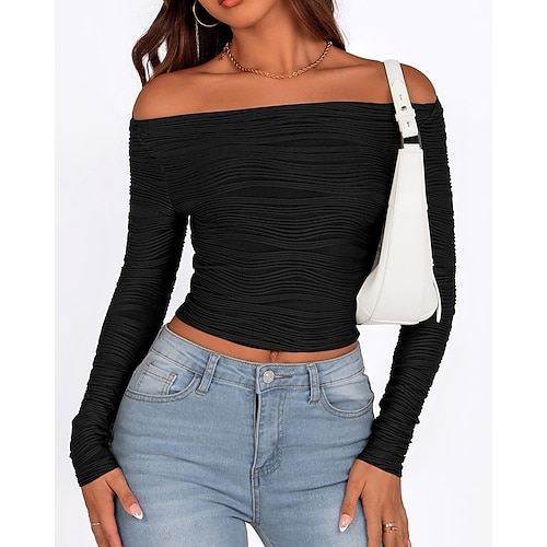 Per donna Maglietta Tinta unica Elegante Moda Classico Manica Lunga Senza Spalle Top Regolari Quotidiano Uscire Weekend Nero Bianco Rosa Verde militare Rosso Primavera Autunno