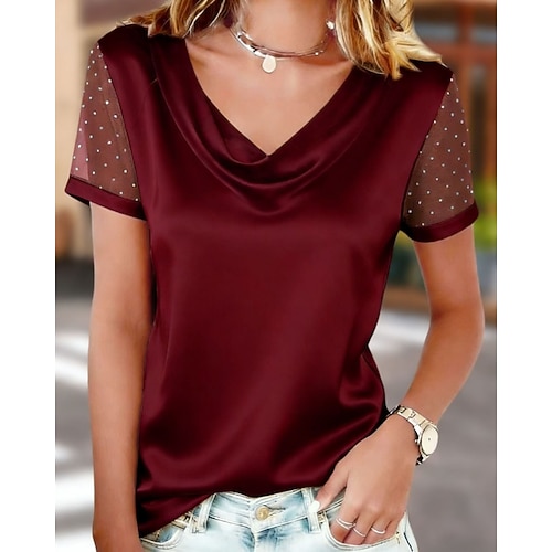 Damen Hemd Bluse Einfach Stilvoll Klassisch Lässig Kurzarm V Ausschnitt Normale Oberteile Täglich Ferien Ausgehen Weiß Champagner Rosa Wein Marineblau Sommer Frühling