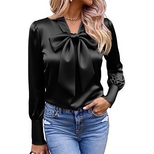 Damen Hemd Satinhemd Bluse Schleife Einfach Stilvoll Klassisch Modern Langarm Krawattenhals Normale Oberteile Täglich Ferien Ausgehen Schwarz Weiß Champagner Rosa Frühling Herbst