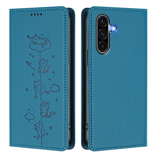 Handy Hülle Handyhüllen Für Samsung Galaxy A07 A56 A36 A26 A16 A06 A55 5G A35 5G A25 A15 Brieftaschenhülle Stoßfest Katze TPU PU-Leder