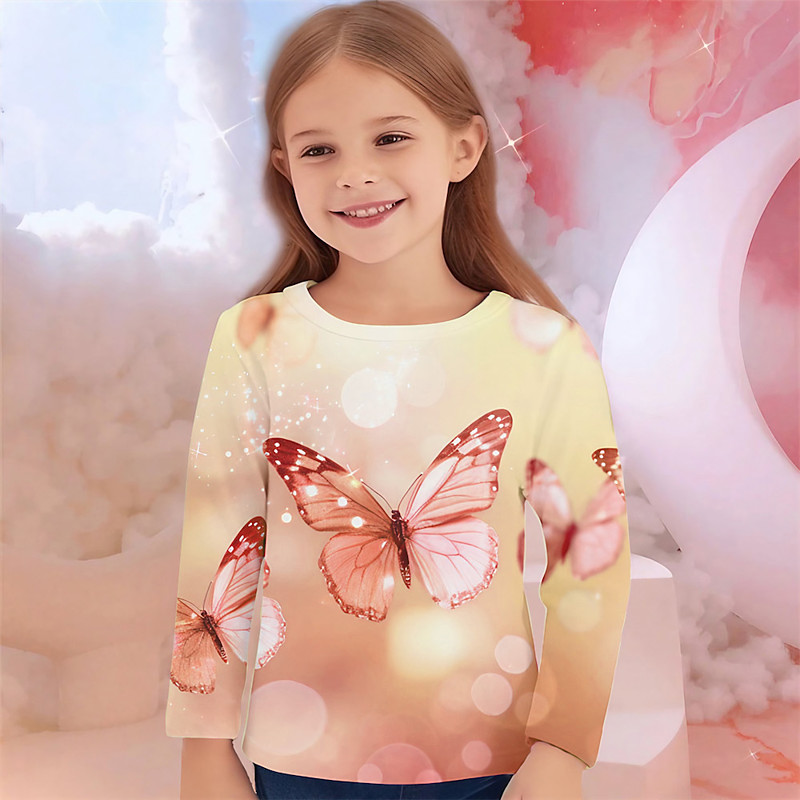 Girls' 3D Graphic Animal Butterfly T shirt Tee Long Sleeve Spring Fall Fashion Basic Kids 4-12 Years Crew Neck Outdoor Casual Daily Regular Fit