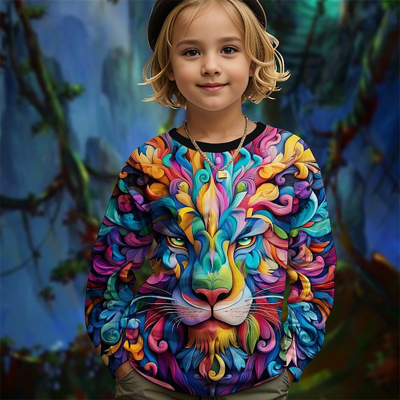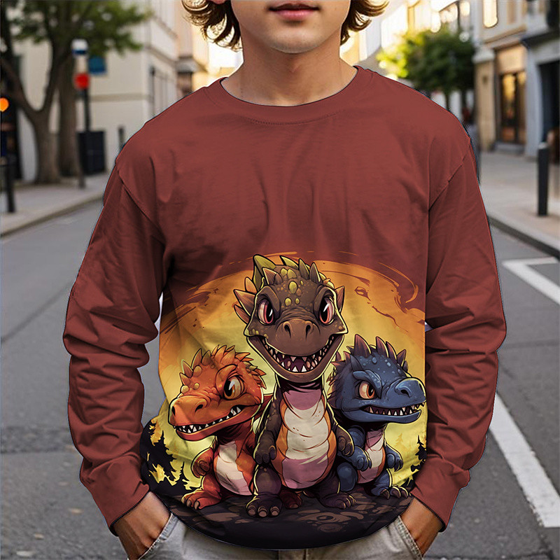 Boys 3D Dinosaur Tee Shirts Long Sleeve 3D Print Fall Winter Sports Fashion Streetwear Kids 3-12 Years Crew Neck Outdoor Casual Daily Regular Fit