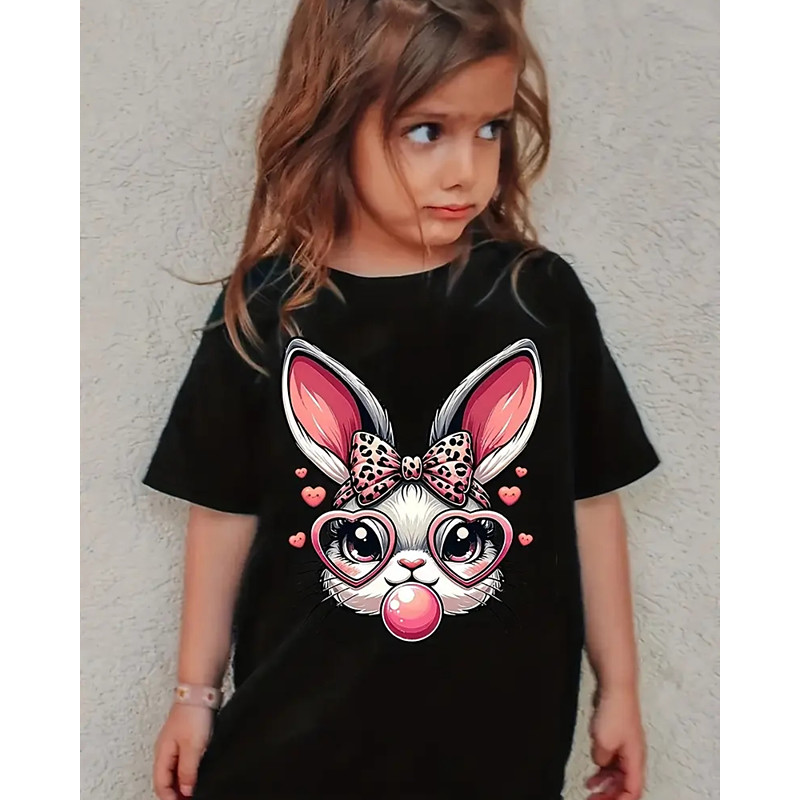 Easter Girls' 3D Rabbit Tee Shirts Short Sleeve 3D Print Summer Active Fashion Cute Kids 3-12 Years Crew Neck Outdoor Casual Daily Regular Fit