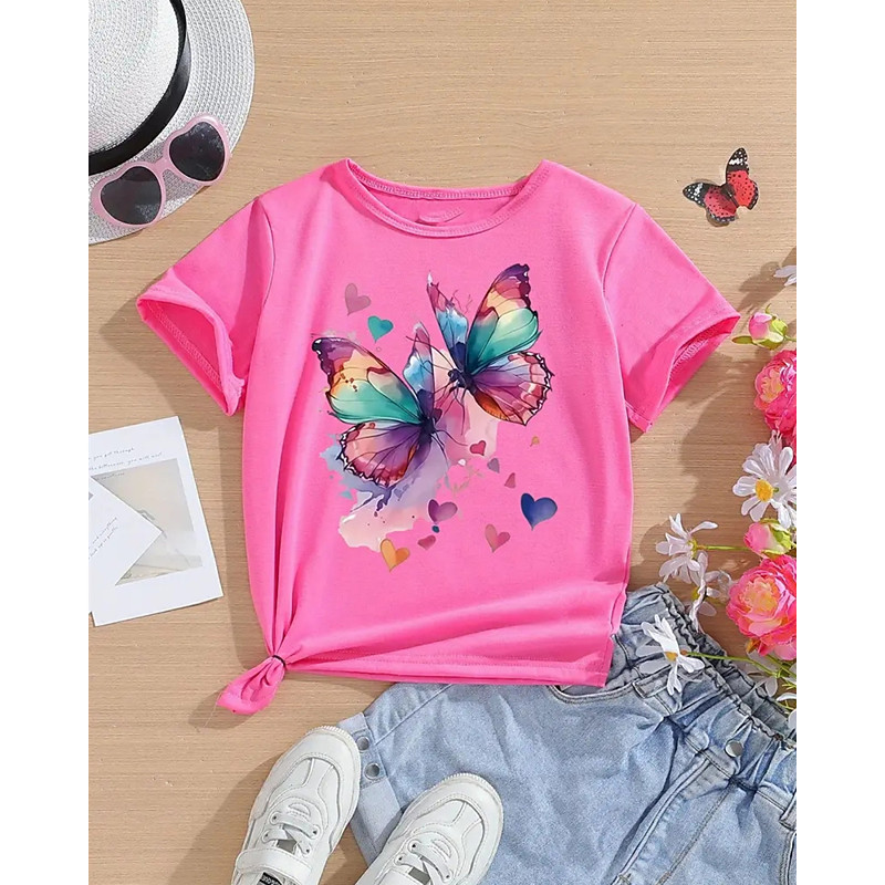 Girls' 3D Butterfly T shirt Tee Short Sleeve Summer Spring Fashion Basic Kids 4-12 Years Crew Neck Outdoor Casual Daily Regular Fit