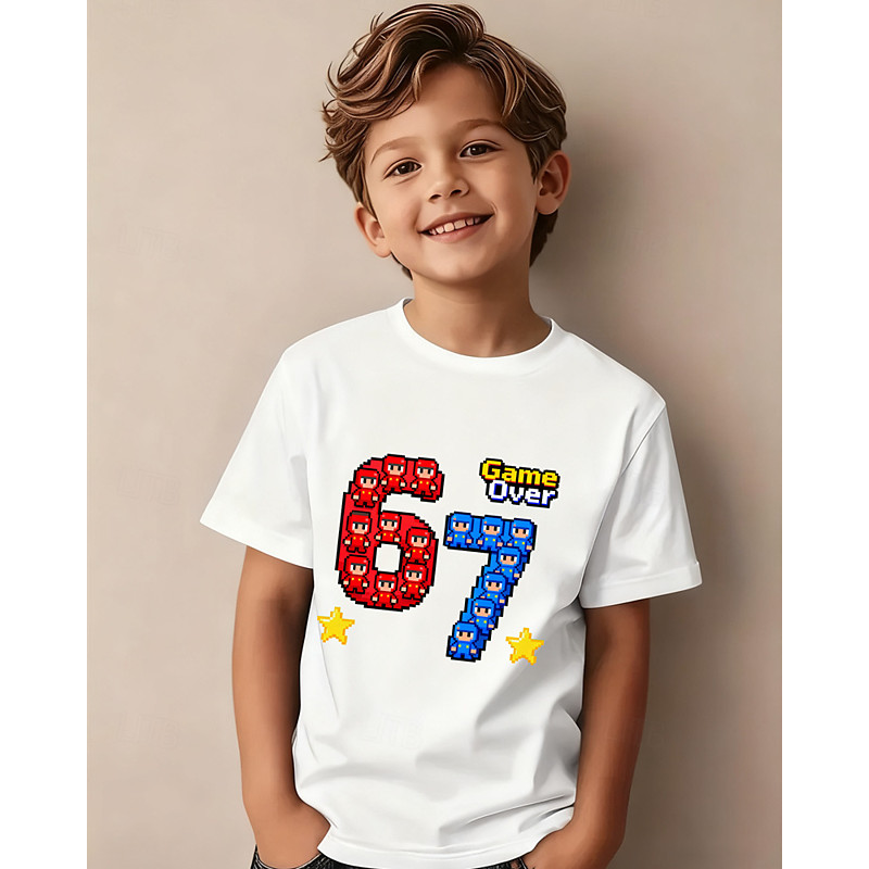 Cotton Kids Boys' Black White Graphic Cartoon Funny Slang 67 T shirt Blouse Crew Neck Short Sleeve Outdoor Dailywear Fashion Streetwear Designer Printing Summer