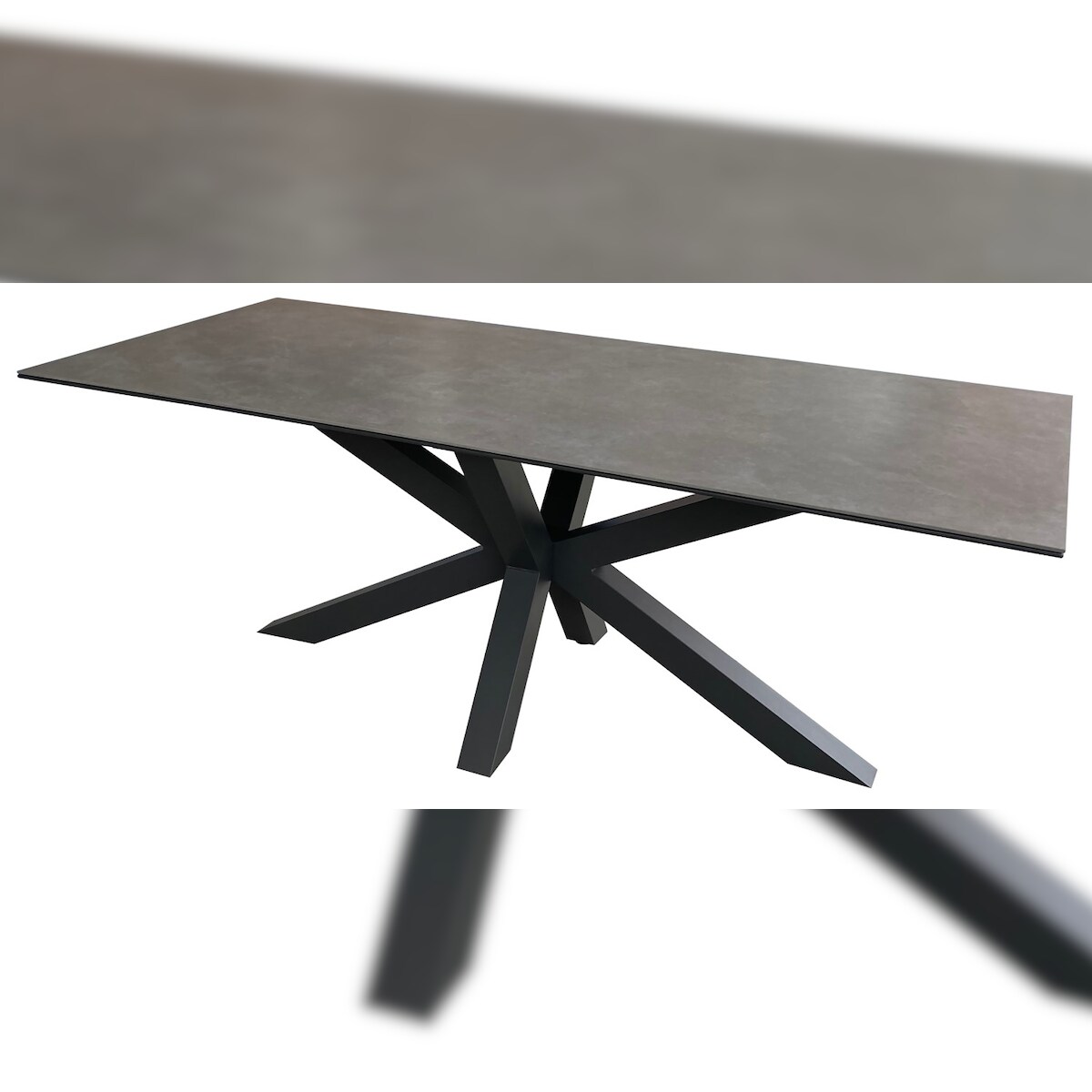 Mr. Deko Tisch Almeria - 200 x 90 cm - gesinterter Stein hellgrau - Gestell Kreuz-Form
