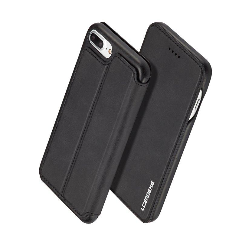 LC.IMEEKE Retro Fodral för iPhone 8 Plus/7 Plus - KonstLäder - Svart