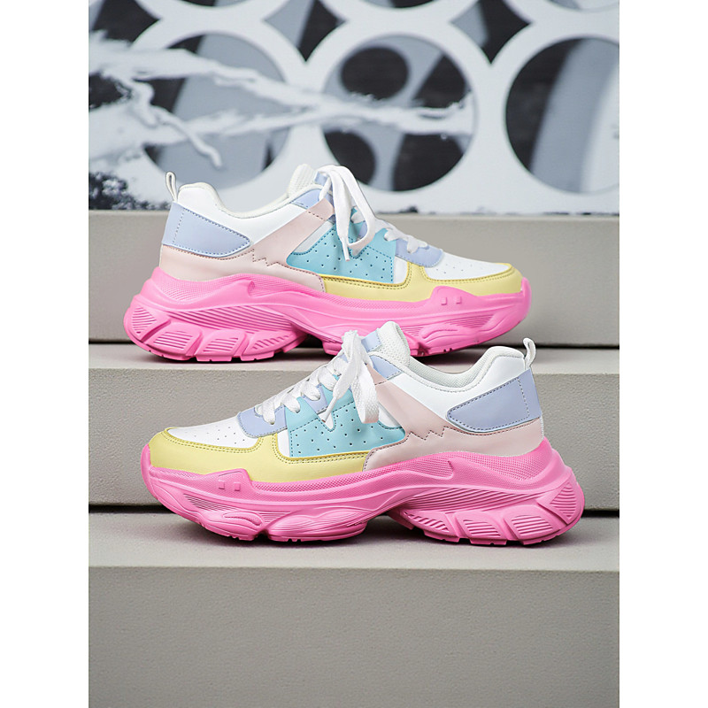Women's Pastel Chunky Sneakers with Platform Sole - Color Block , Ideal for Casual Wear, Street Fashion and Everyday Outings